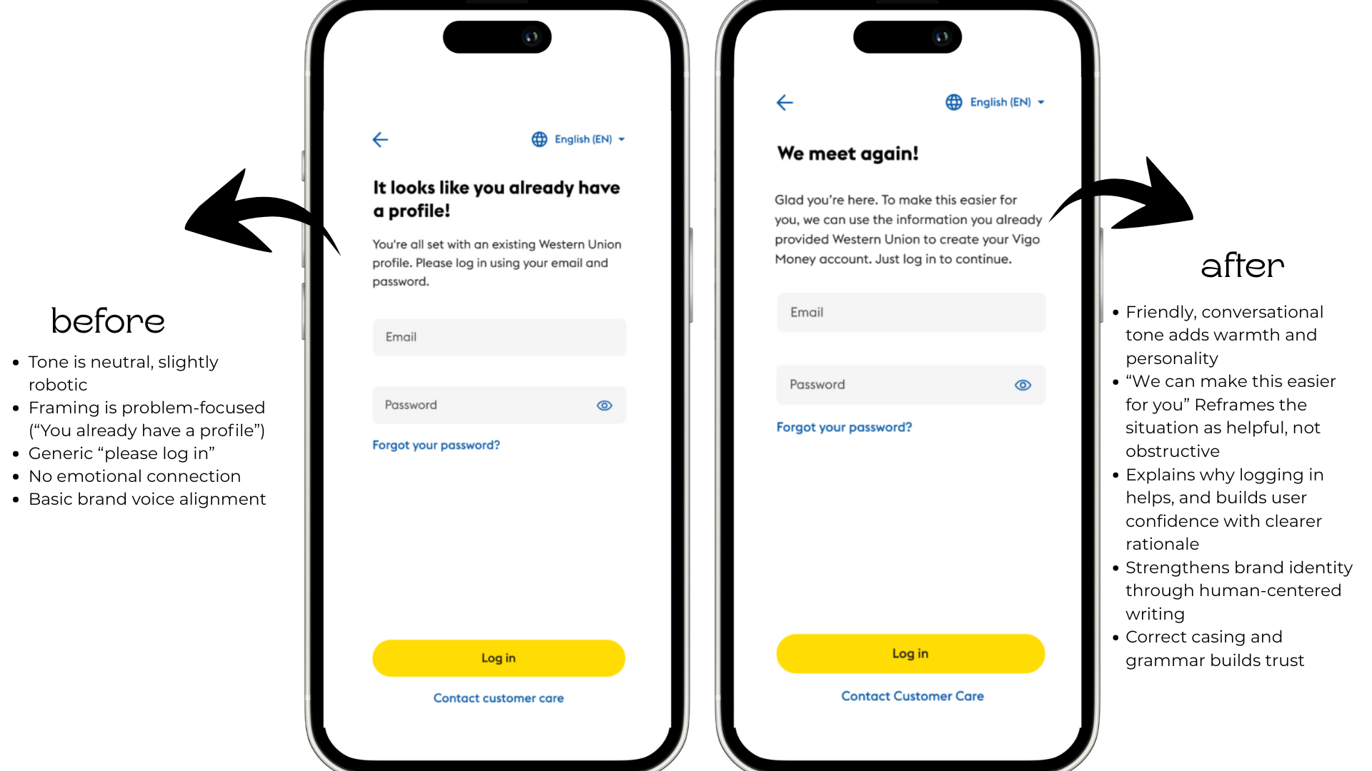 Why it works - This update transforms a potentially frustrating moment into a reassuring one. Instead of pointing out a “duplicate” profile, the message celebrates the return of the user and offers a solution. The result: reduced friction, a more positive emotional tone, and clear next steps.