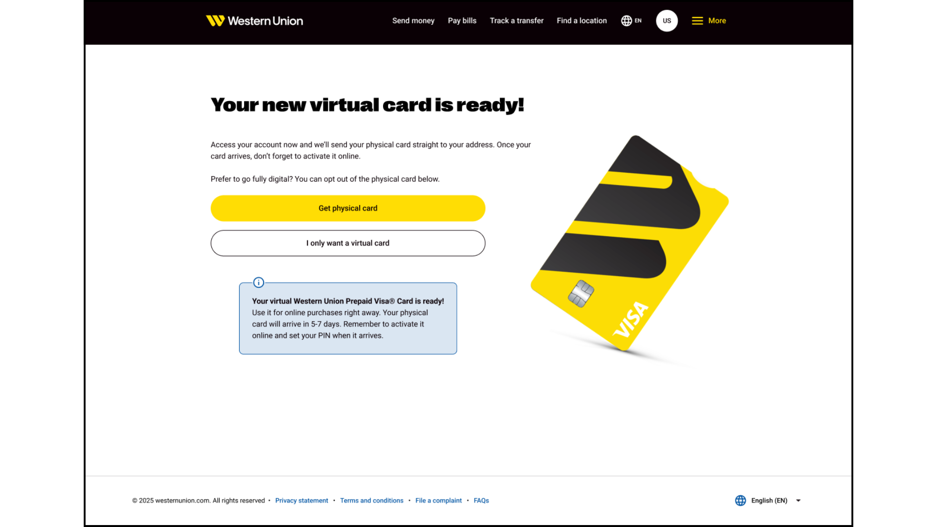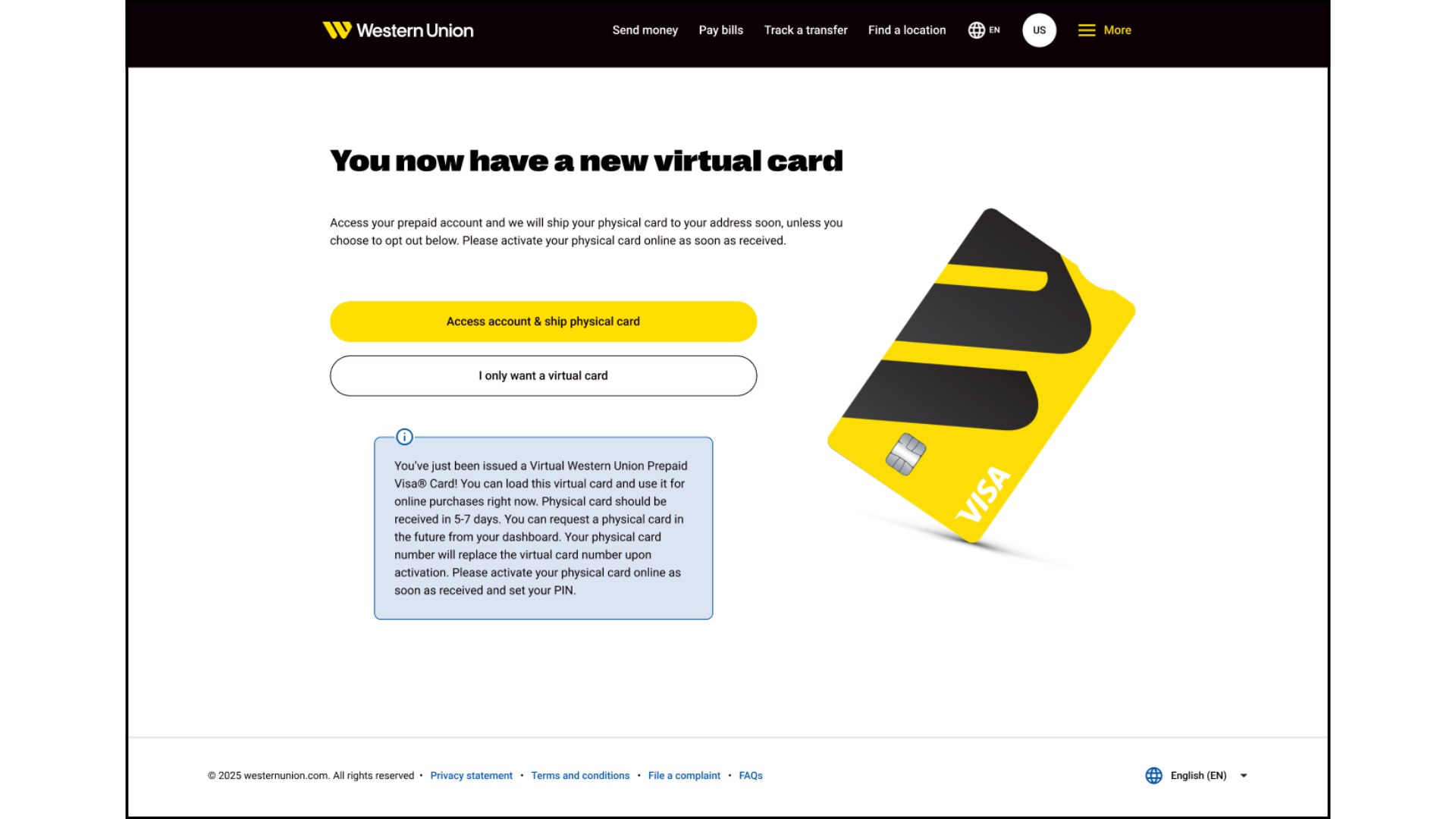 Context - Western Union’s prepaid card onboarding flow needed clearer, more user-friendly messaging. The original copy was lengthy, repetitive, and difficult to scan, which risked confusing customers about the difference between their virtual and physical cards.